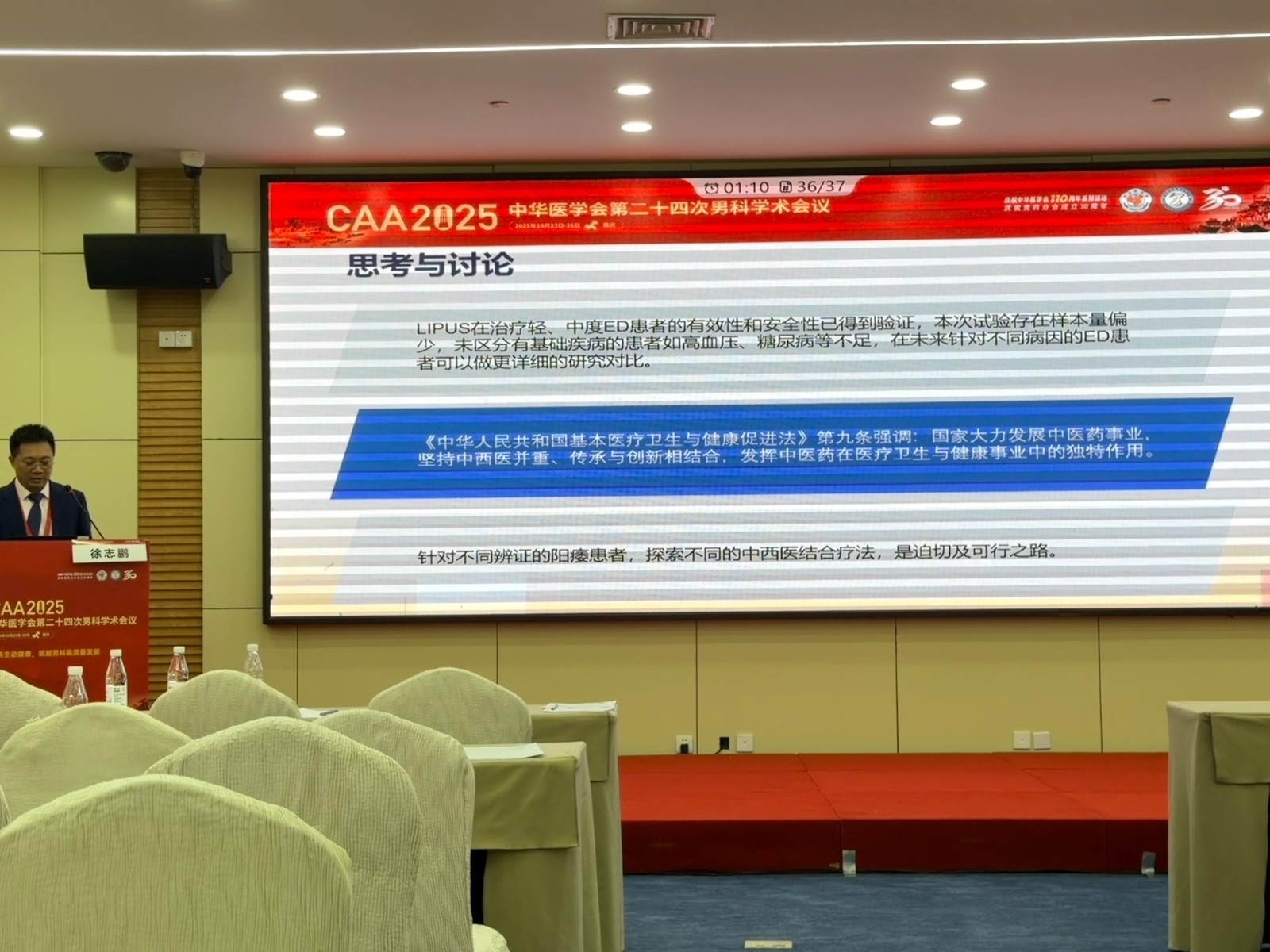 会议期间,低强度脉冲式超声波(LIPUS)治疗勃起功能障碍(ED)成为焦点议题。多场专题报告与论文发言围绕LIPUS的临床应用、安全性及创新疗法展开,为参会者呈现了该领域的最新研究进展与实践成果。