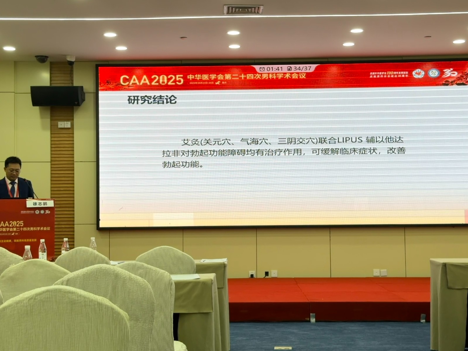 宁波市鄞州区第二医院 徐志鹏教授则解析了《艾灸联合低强度脉冲超声(LIPUS)及小剂量他达拉非治疗勃起功能障碍的临床疗效》,展示了中西医结合疗法的协同增效作用,为临床治疗提供了新思路。